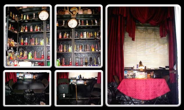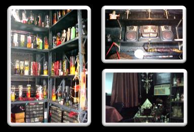 Así que pondrás unos estantes de metal, en las paredes y en ellos, se colocaran los plantes, los trabajos, aceites, polvos, velones y velas, etc. Dejando el suelo libre. También una mesita y dos sillas plegables, que cierran para poder hacer las ceremonias y ritos. Un radio casete o CD para escuchar los mambos de palo y música espiritual.